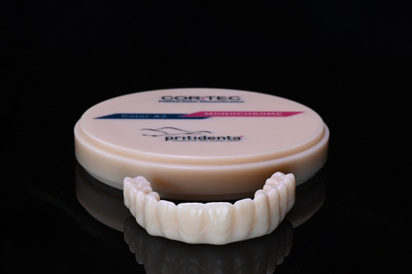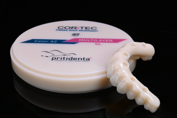 The CORiTEC PMMA Multilayer Disc provides dental technicians with a material that simplifies the digital workflow, enhances aesthetic appeal, fits seamlessly into existing processes, and enables high efficiency in everyday laboratory work.