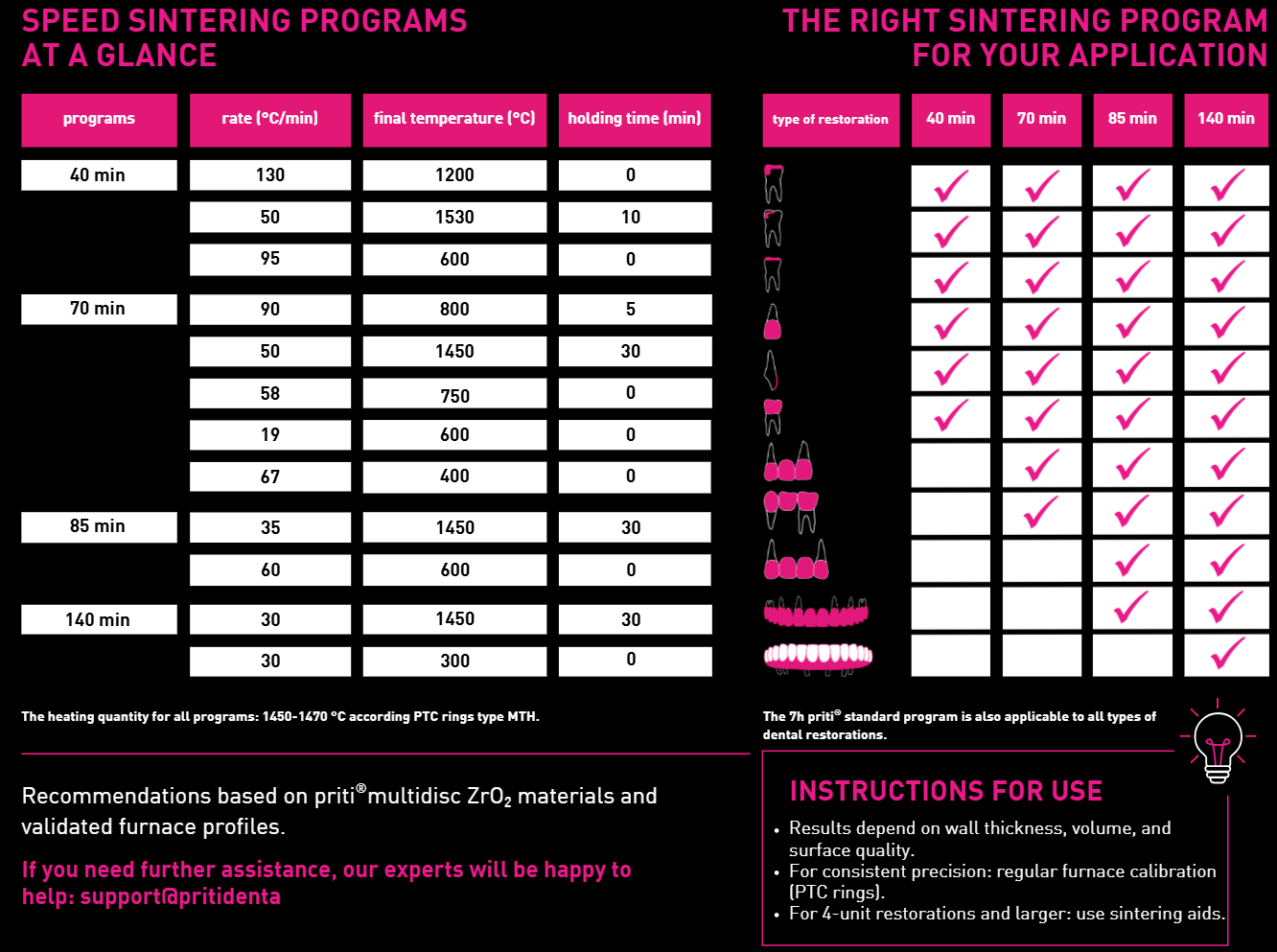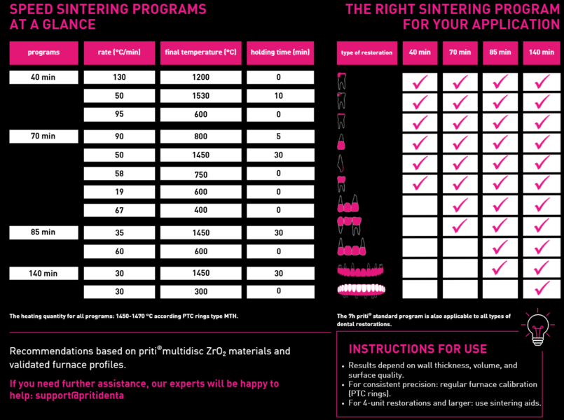 Note: For accurate results, sintering should only be carried out in calibrated furnaces. A final temperature measurement with PTC rings (MTH) from pritidenta is recommended.