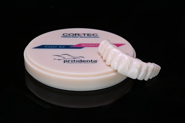Mit dem fünfschichtigen Farb- und Transluzenzverlauf wird eine Natürlichkeit erreicht, die im PMMA-Segment bisher kaum möglich war. Ein Kunststoffmaterial, das nicht nur aussieht wie echte Zahnsubstanz, sondern sich im digitalen Workflow genauso leicht integrieren lässt wie gewohnt – und dabei deutlich mehr bietet. Die neue CORiTEC PMMA Multilayer Disc ist perfekt abgestimmt auf die bekannten Farbakzente der Zirkonoxid-Discs priti© multidisc mit fünf Schichten und angepassten Farbverläufen. Für Zahntechniker bedeutet das: Ein reibungsloser Übergang vom Provisorium zur endgültigen Versorgung – ohne Farbunterschiede, ohne Kompromisse. Die CORiTEC PMMA Multilayer Discs sind ideal für das Fräsen von Mock-ups, Langzeitprovisorien und alle Fälle, in denen Ästhetik und Materialkonstanz entscheidend sind. pritidenta liefert damit ein PMMA-Kunststoff, das nicht nur mithalten kann – sondern im Bereich Farbstabilität und Effizienz hervorragende Ergebnisse liefert.