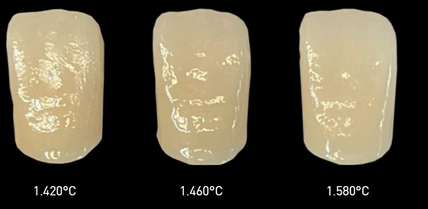 Im Vergleich zur Standardsinterung zeigen sich lediglich minimale Abweichungen in Farbintensität und Transluzenz. Die ästhetischen Ergebnisse bleiben zuverlässig auf einem hohen Niveau und erfüllen maximale Ansprüche an natürliche Zahnrestaurationen.
