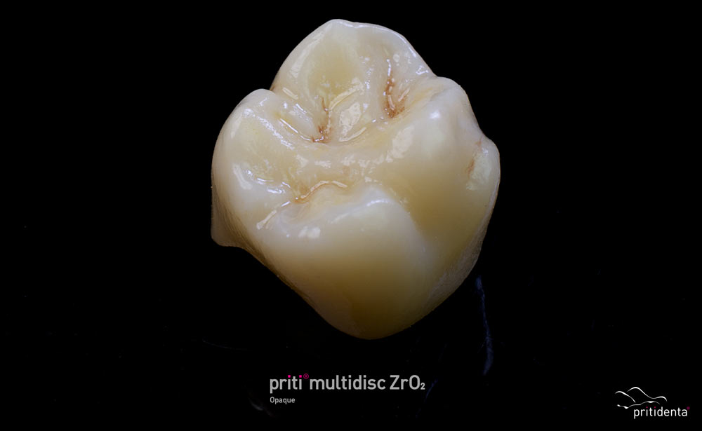 Zwei Möglichkeiten hat der Zahntechniker für die Finalisierung von monolithisch-vollanatomischen Restaurationen (priti®multidisc ZrO2):