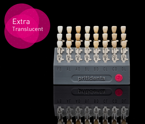 - Extra Translucent (ET) = > 45 % Transluzenz (Biegefestigkeit von > 1150 MPa)